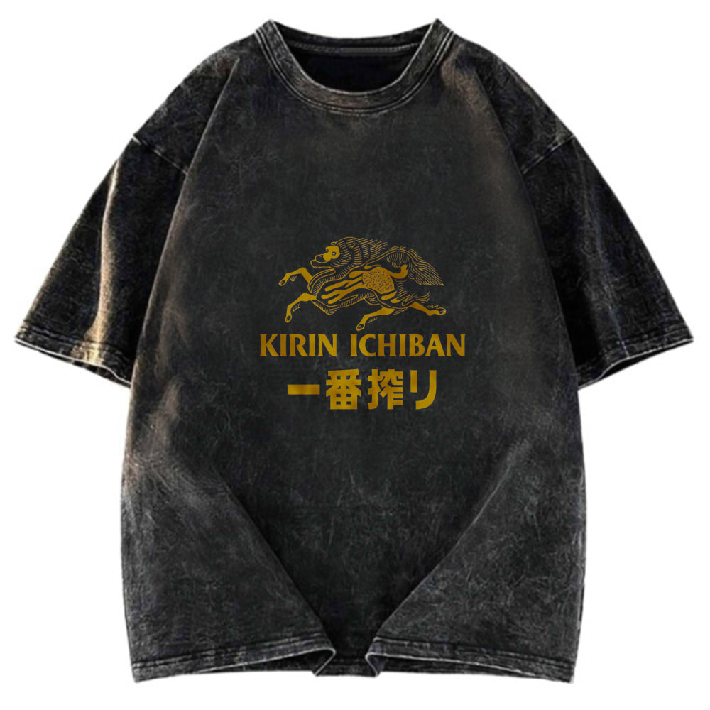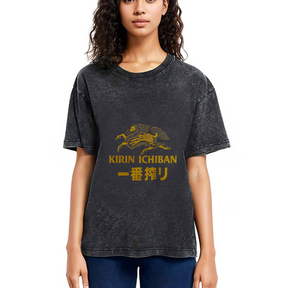 Tokyosol Japanese Beer Art Print Washed T-Shirt